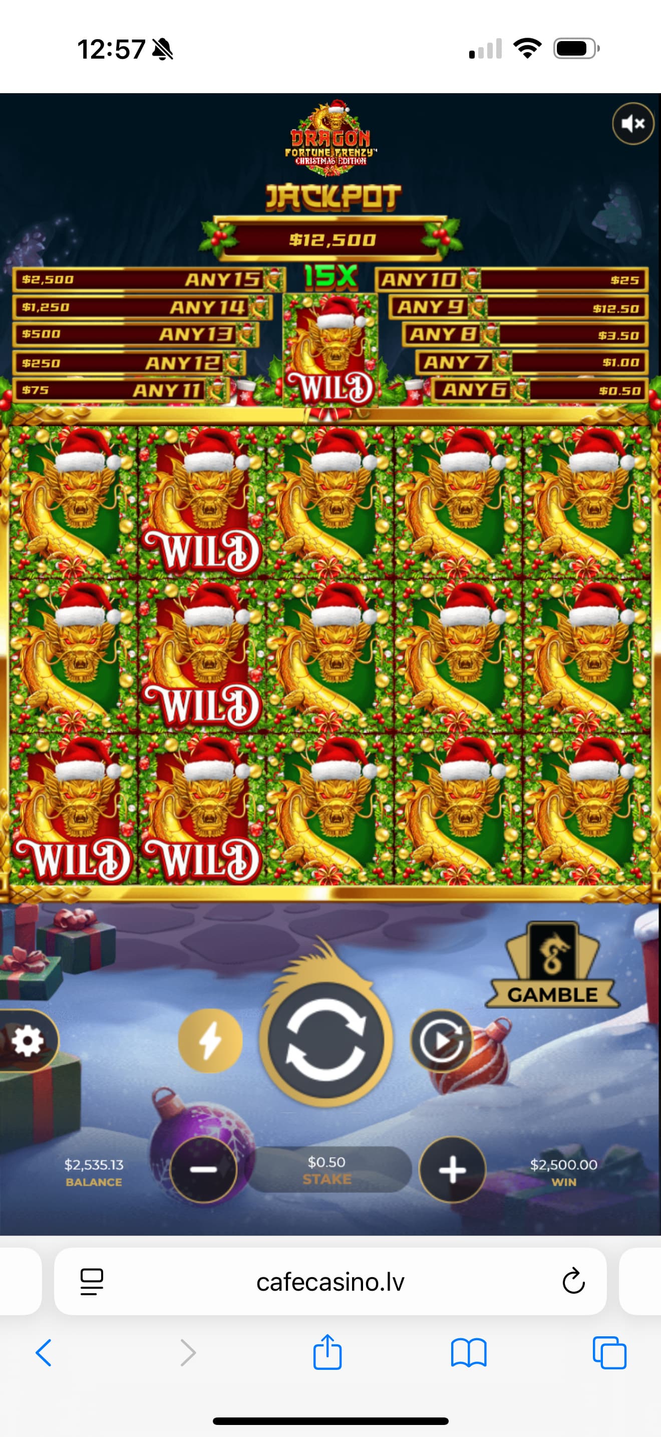 • What was your winning game and amount?dragon fortune frenzy $2500