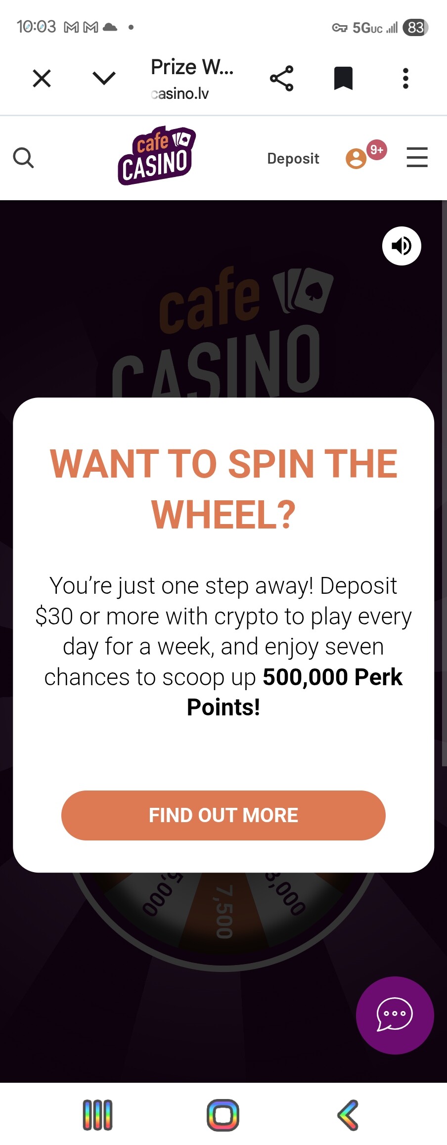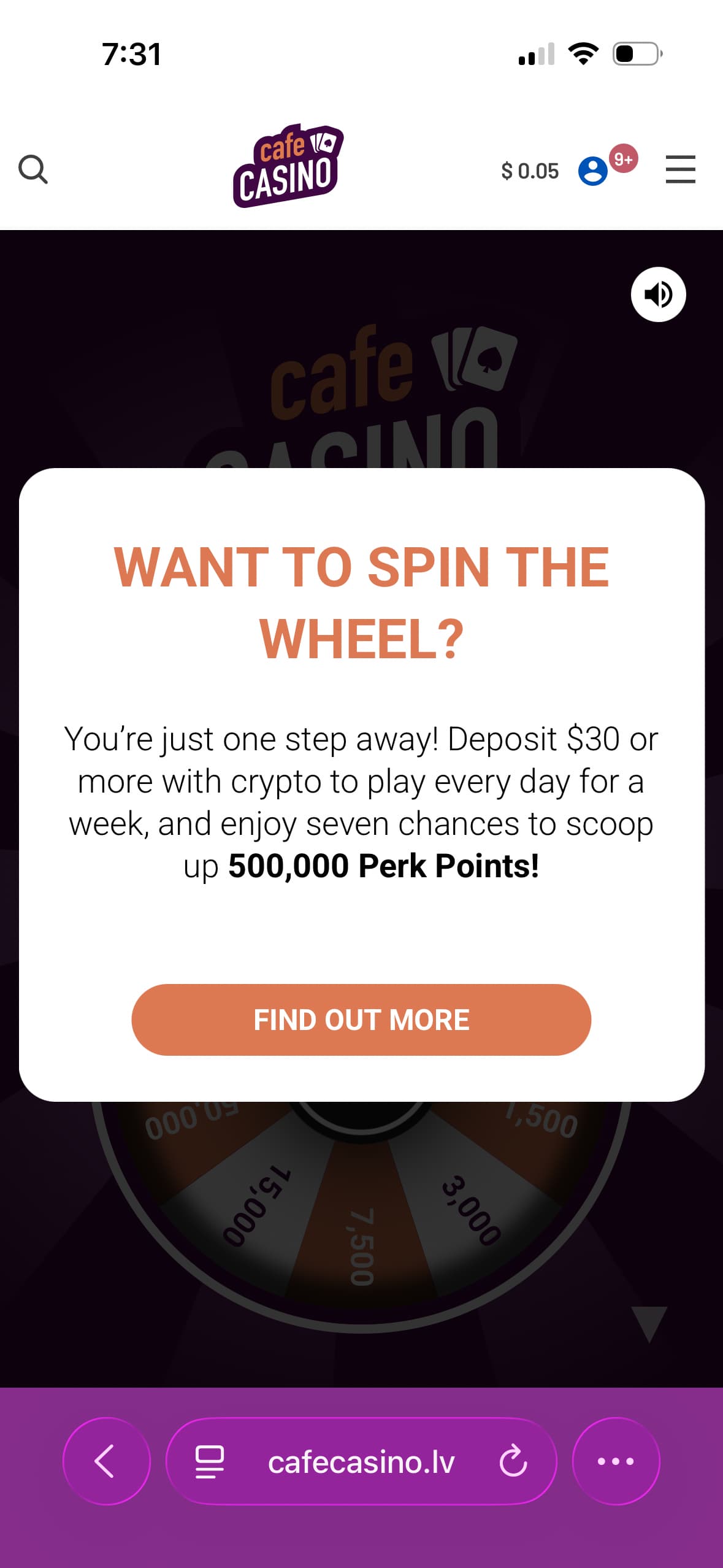 How come you only get between 500-1000 points on this wheel but yet cafe wants us deposited 50.00 dollars just to spin this wheel if not like cafe is giving us big bonus I have not got a bonus from cafe in over 6 months or more its a shame I have to wait for the perks pint to add up to use them at the perk store to get a bonus… it’s should not be this way How you keep players from leaving you give them something to make them want to say and spead the word… what a shame!