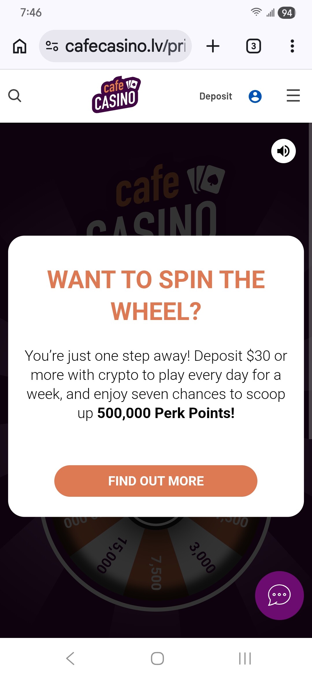 It has been sent to the website tech guys to be updated. Hopefully this will be done sooner rather than later. Your account however does require a $50 deposit to receive 3 wheel spins.